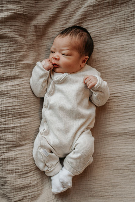 Maak je geen zorgen als je huis niet perfect opgeruimd is. Ik weet hoe dat gaat: een baby erbij, een nieuw ritme, veel bezoek… Het is helemaal oké. Voor mooie beelden heb ik niet veel ruimte nodig. Vooraf laat ik jullie weten welke plekjes in huis ideaal zijn om te fotograferen, zodat jullie precies weten wat te verwachten.